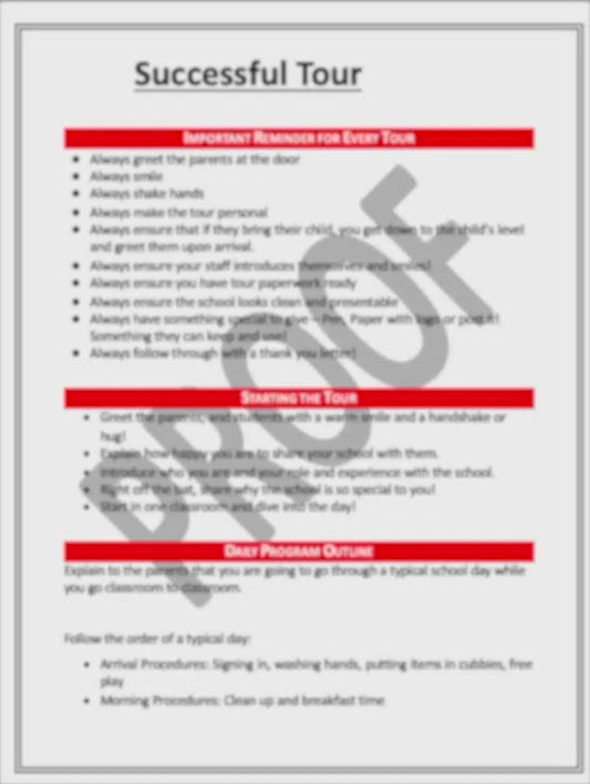 Successful Tour Outline, Checklist, and Tour Confirmation Form