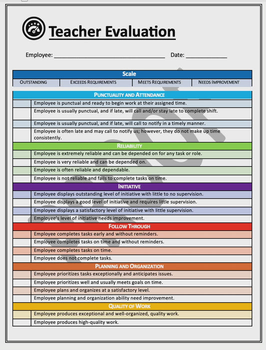 Lead and Assistant Teacher Performance Evaluation