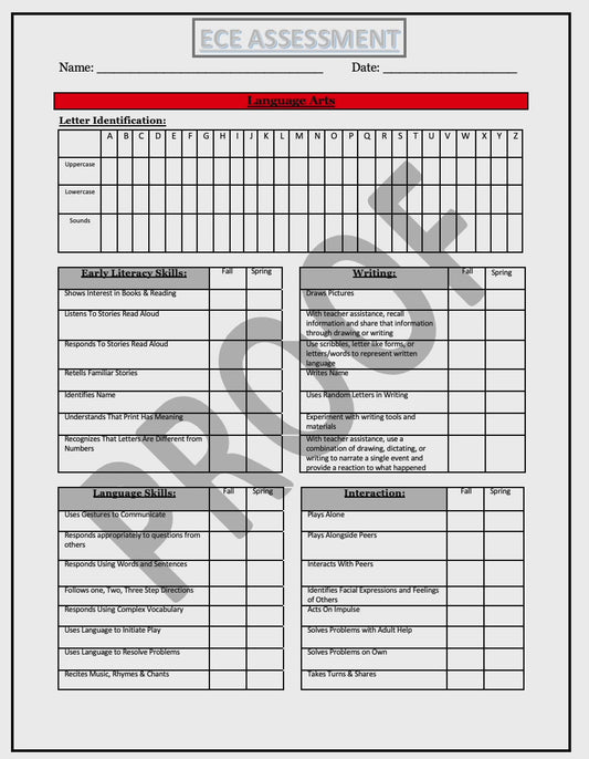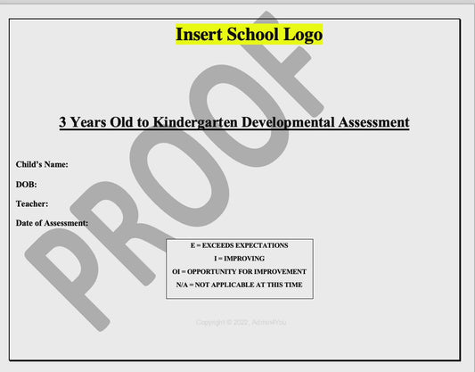 Student Assessment - Ages 3 - Kindergarten