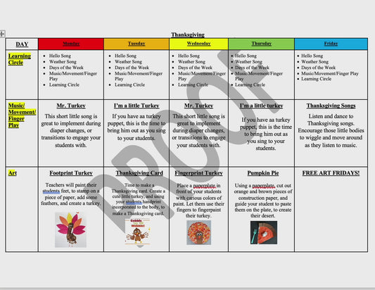 Infant Holiday Lesson Plan Bundle
