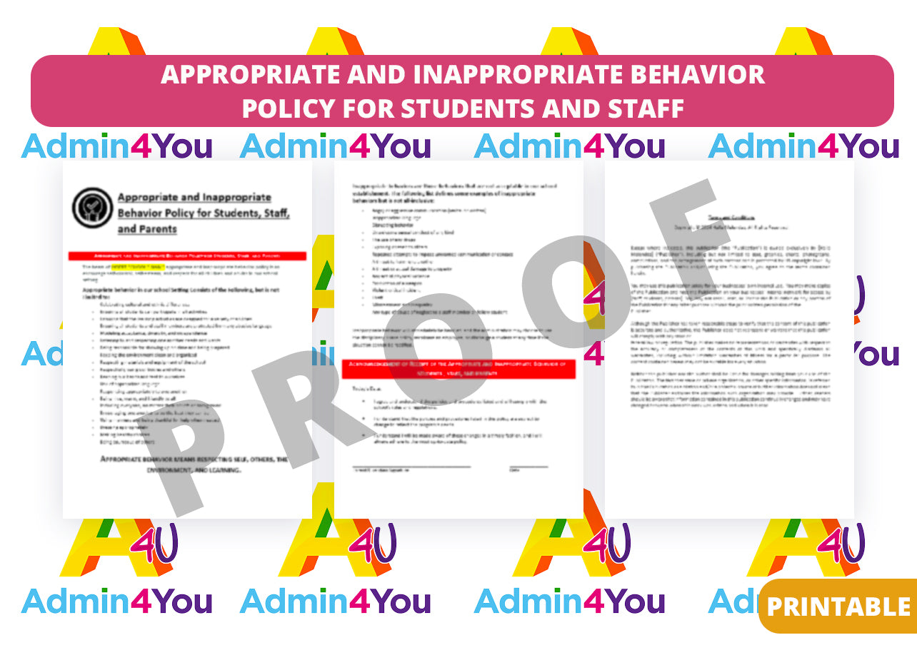 The appropriate and inappropriate behavior policy for students, staff, and parents outlines the proper and acceptable behavior for personnel on school property. This behavior policy is to encourage self-control and respect for all children and adults in the school setting.