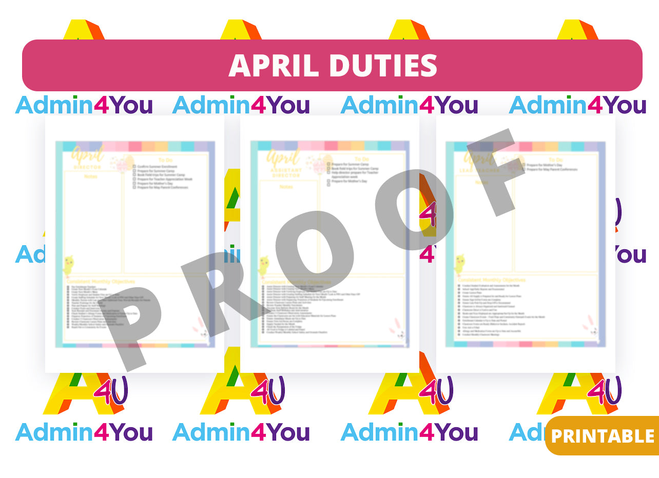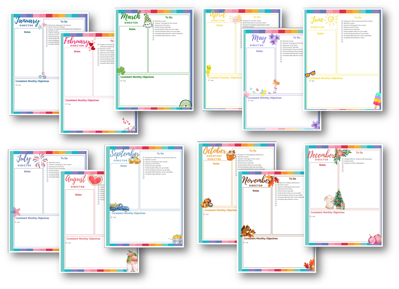 This editable document excels in clarity, organization, and visual appeal, serving as an effective tool for streamlining school responsibilities. It offers a comprehensive list of monthly duties tailored for the Director, Assistant Director, Lead Teacher, and Assistant Teacher roles, ensuring that everyone remains aligned and on track