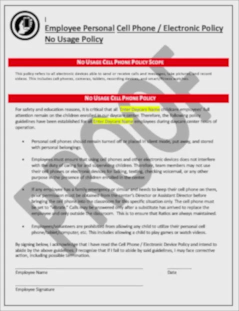 Two editable policies are attached. The first policy is written to outline a NO cell phone usage policy. The second is a minimal usage policy.