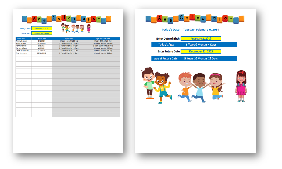 The Childcare Age Calculator is a user-friendly and efficient tool designed specifically for childcare providers to streamline the process of accurately determining the age of children in their care. With just a few clicks, providers can input a child's date of birth and receive an instant calculation of their precise age in years, months, and days. This eliminates any guesswork or manual calculations, ensuring accuracy and efficiency in age assessment.