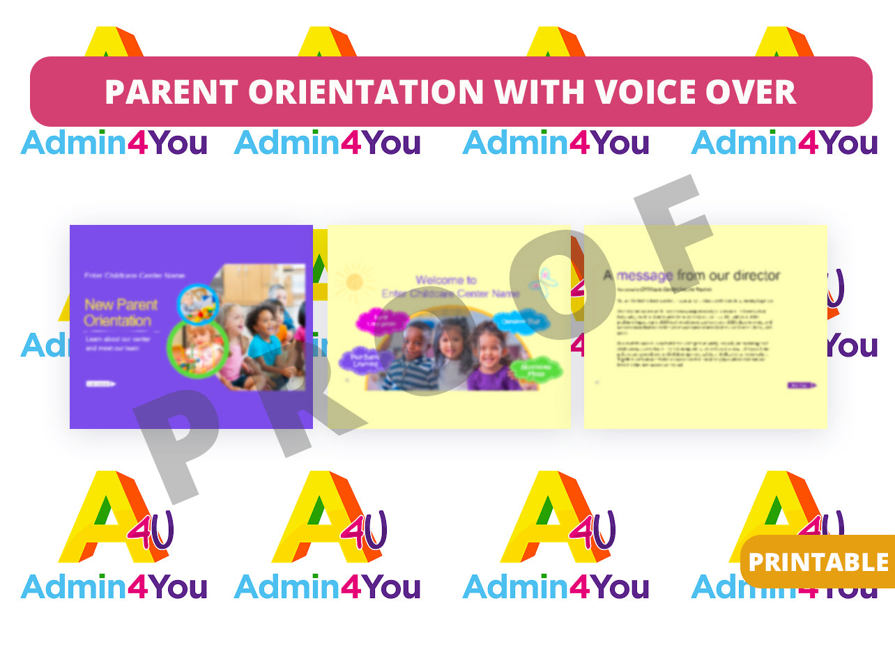 The Childcare New Parent Orientation Presentation is a versatile and fully customizable resource tailored to meet your unique needs. Designed with universal content that seamlessly fits most childcare centers, this presentation offers a distinctive feature – complete customization capability. You have the flexibility to tailor the content to align with your center’s individual and regulatory requirements, ensuring a highly personalized orientation process.