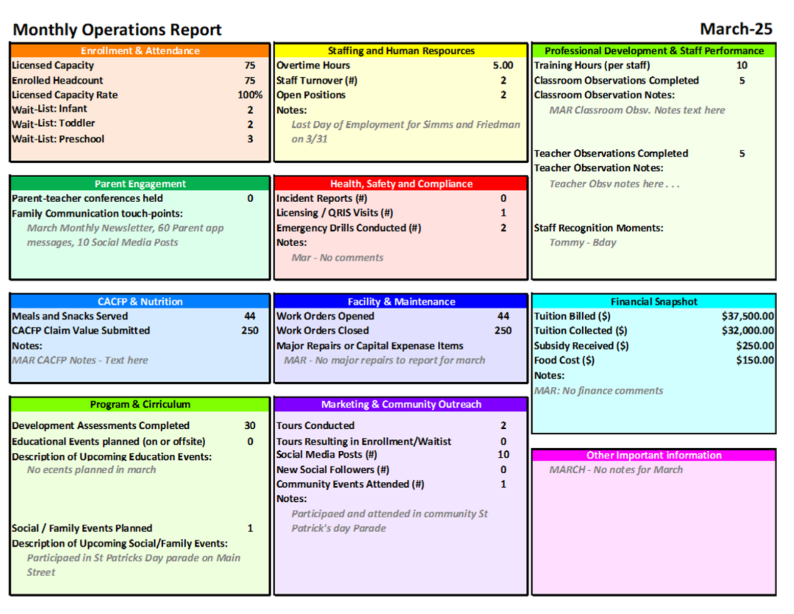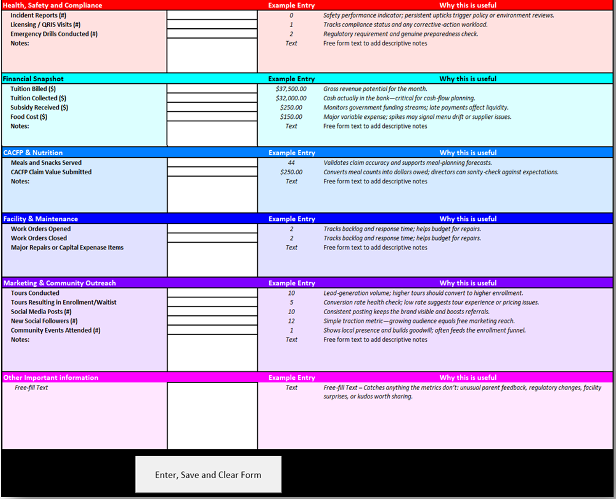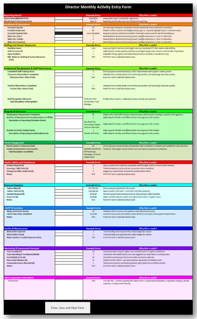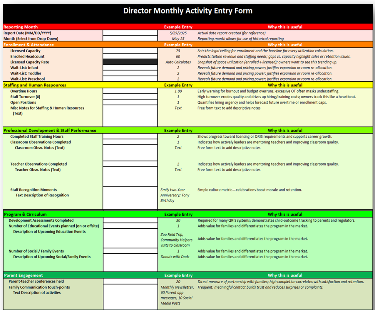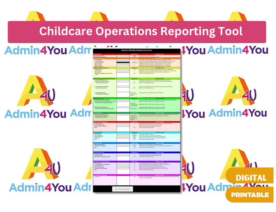 Childcare Operations Reporting Tool (Excel Detailed Version and Bonus Microsoft Word Form)