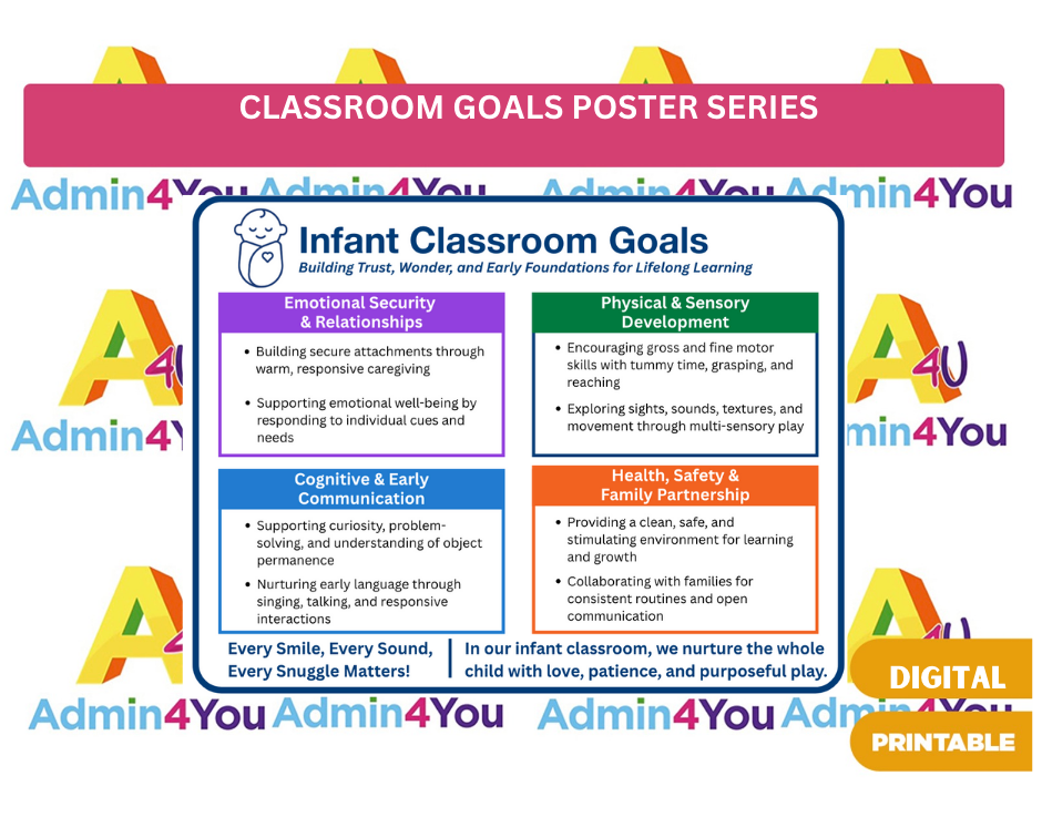 Child Milestone Goals Poster: Highlights key developmental achievements and benchmarks typically observed at each stage, providing educators and families with clear expectations.