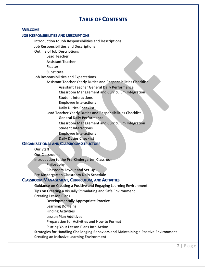 Clear outlines of roles for Lead Teachers, Assistant Teachers, Floaters, and Substitutes.