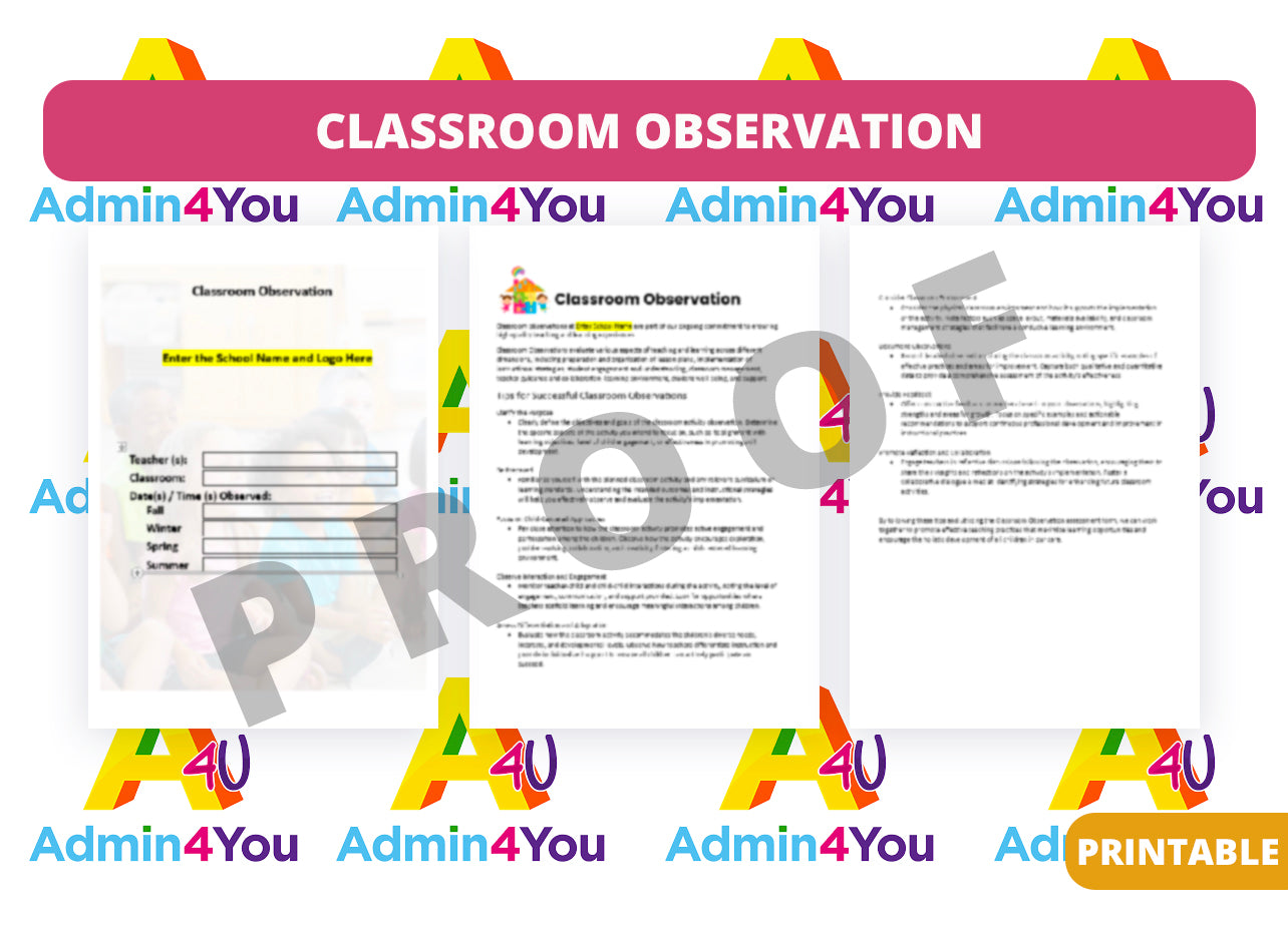 The Classroom Observation Assessment aims to provide valuable insights into the dynamics of the learning environment, facilitating ongoing reflection and improvement in teaching practices. It serves as a valuable resource for educators, administrators, and stakeholders to promote the holistic development and success of students within the educational setting.