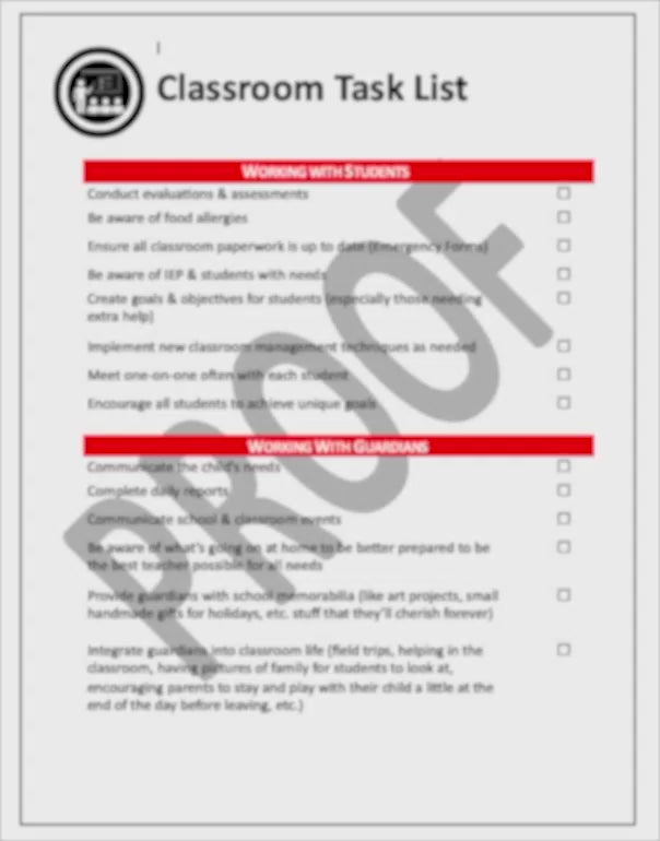 The classroom task list is the ultimate checklist to get the classroom organized, clarify daily job responsibilities, and a tool to use to strengthen classroom structure and systems.