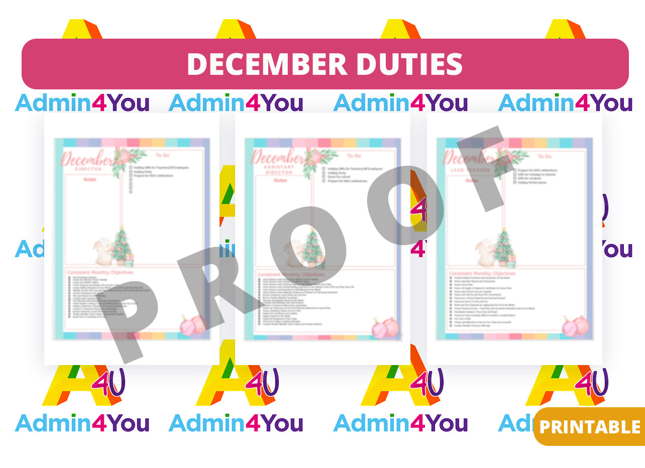 This editable document excels in clarity, organization, and visual appeal, serving as an effective tool for streamlining school responsibilities. It offers a comprehensive list of monthly duties tailored for the Director, Assistant Director, Lead Teacher, and Assistant Teacher roles, ensuring that everyone remains aligned and on track