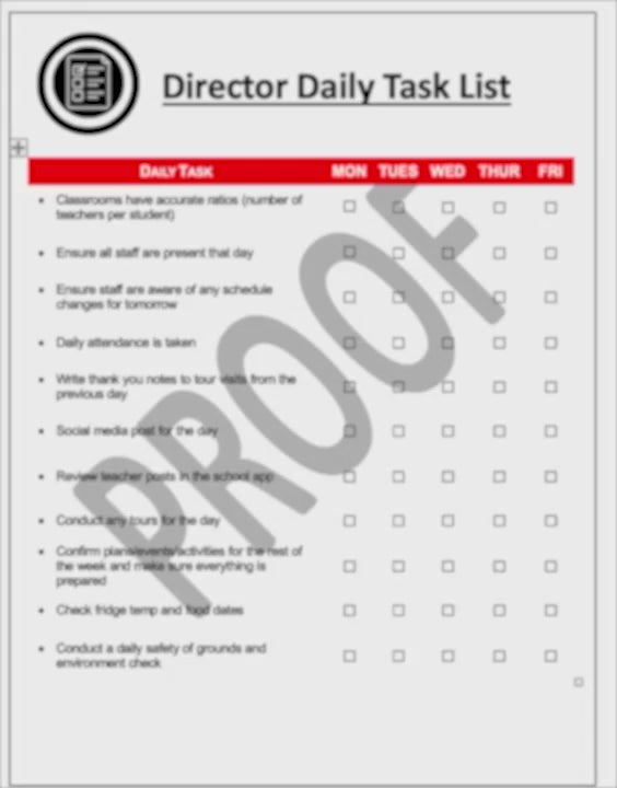As a childcare director, you are responsible for overseeing the smooth operation of a childcare facility, ensuring the safety, well-being, and developmental progress of the children under your care. Your role involves a variety of duties on a yearly, monthly, weekly, and daily basis.