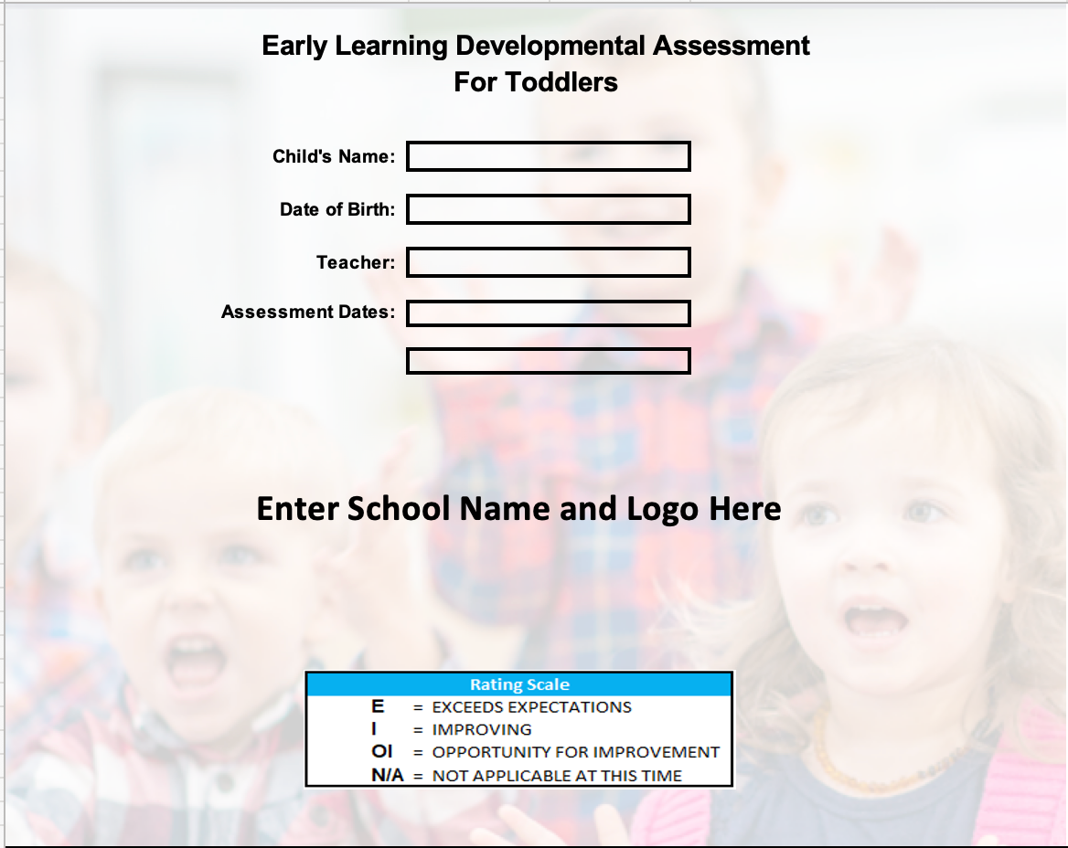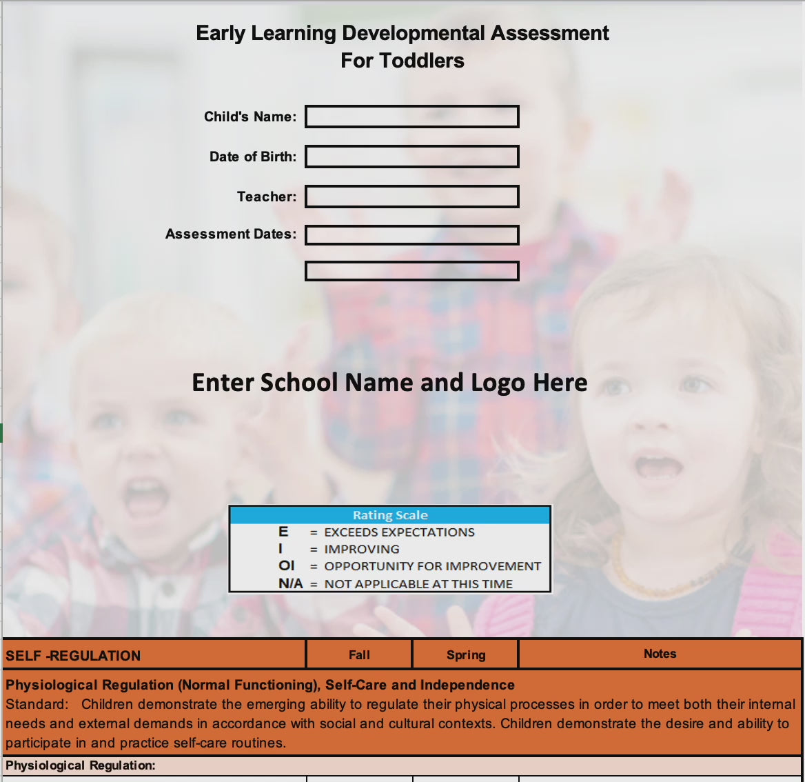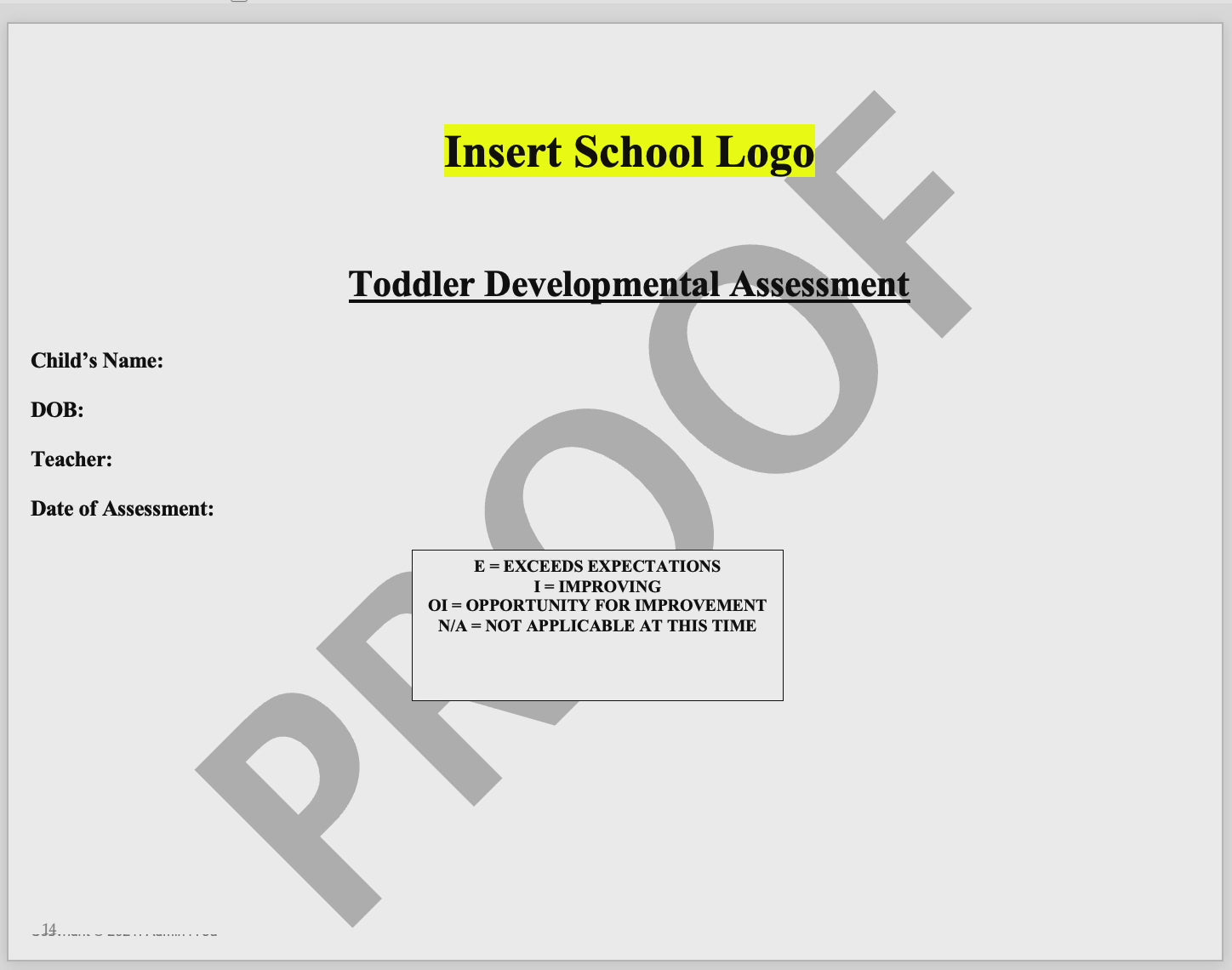This developmental assessment outlines the developmental milestones, goals, and learning ages for children in the toddler age group.