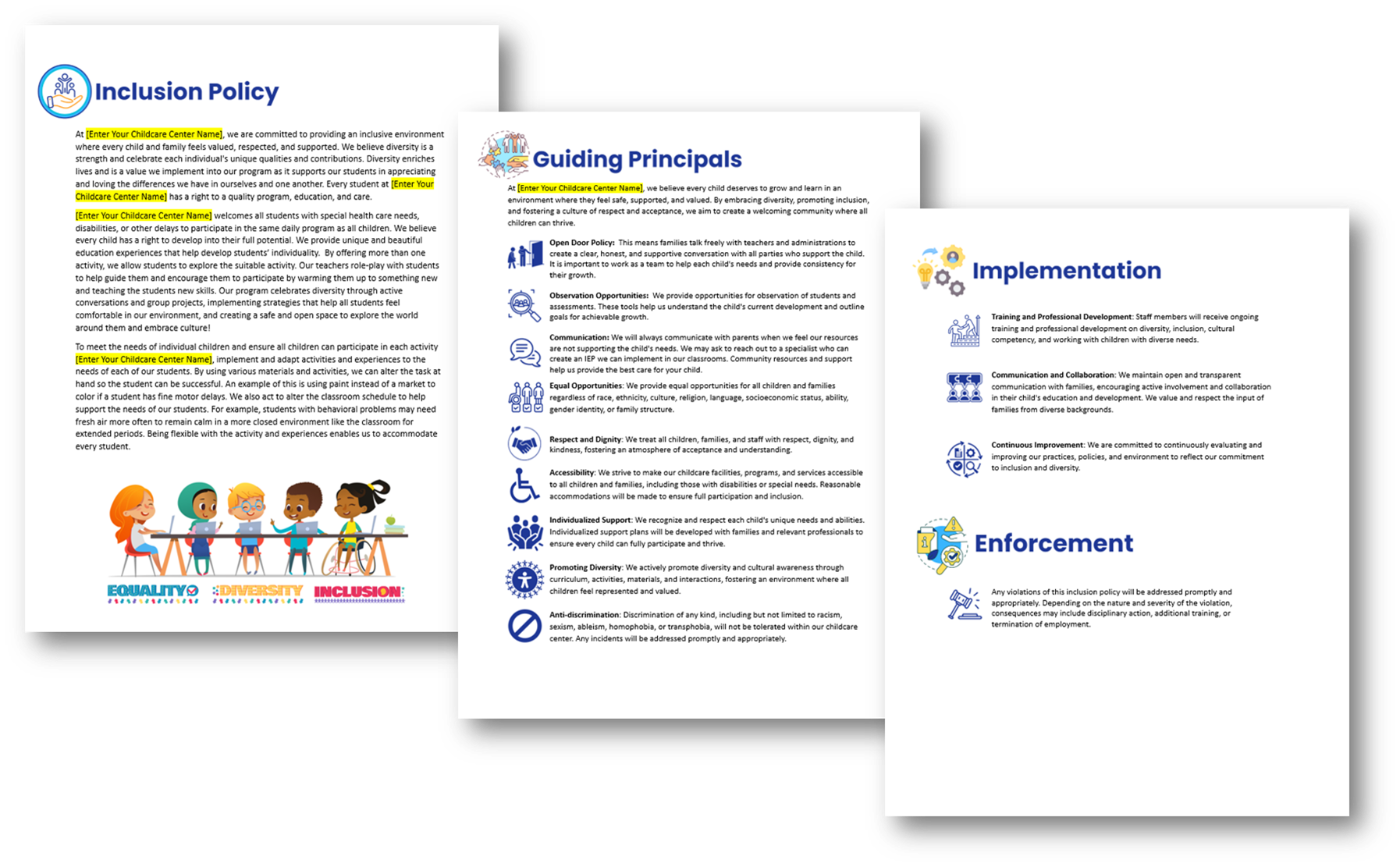 Childcare is committed to providing a nurturing and inclusive environment where every child feels valued, respected, and supported. ECE teachers believe in celebrating diversity and fostering an atmosphere of acceptance, where children from all backgrounds, abilities, and identities can thrive. The inclusion policy outlines our dedication to creating a safe and supportive space for every child and family.
