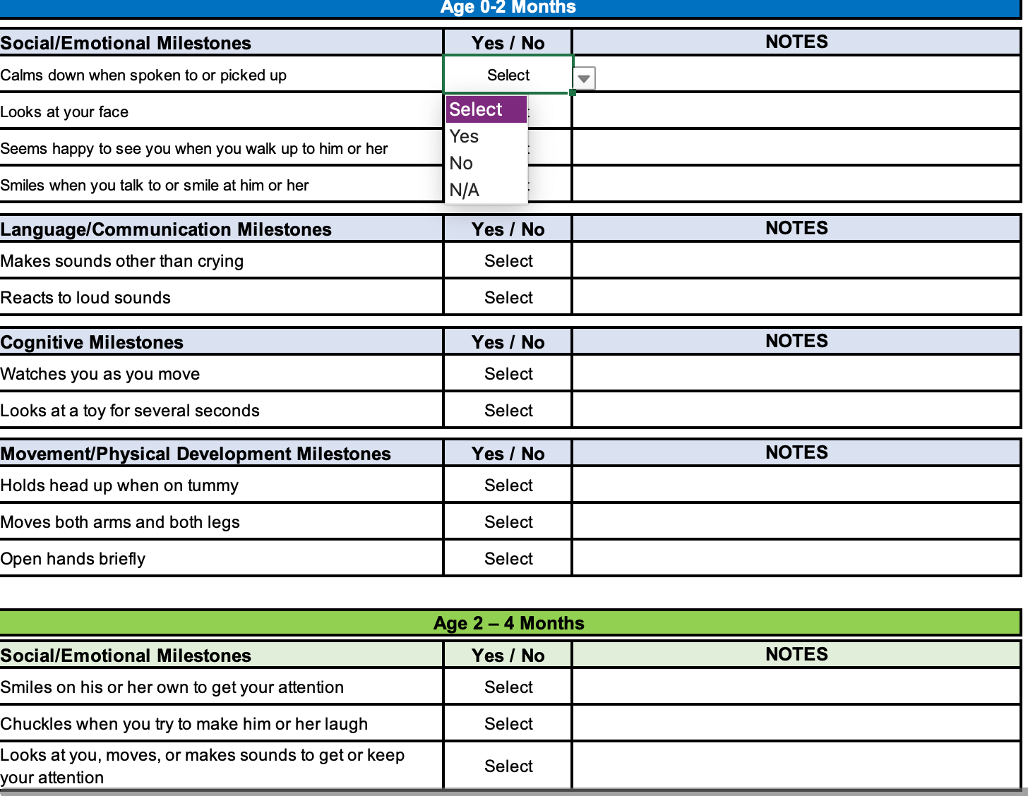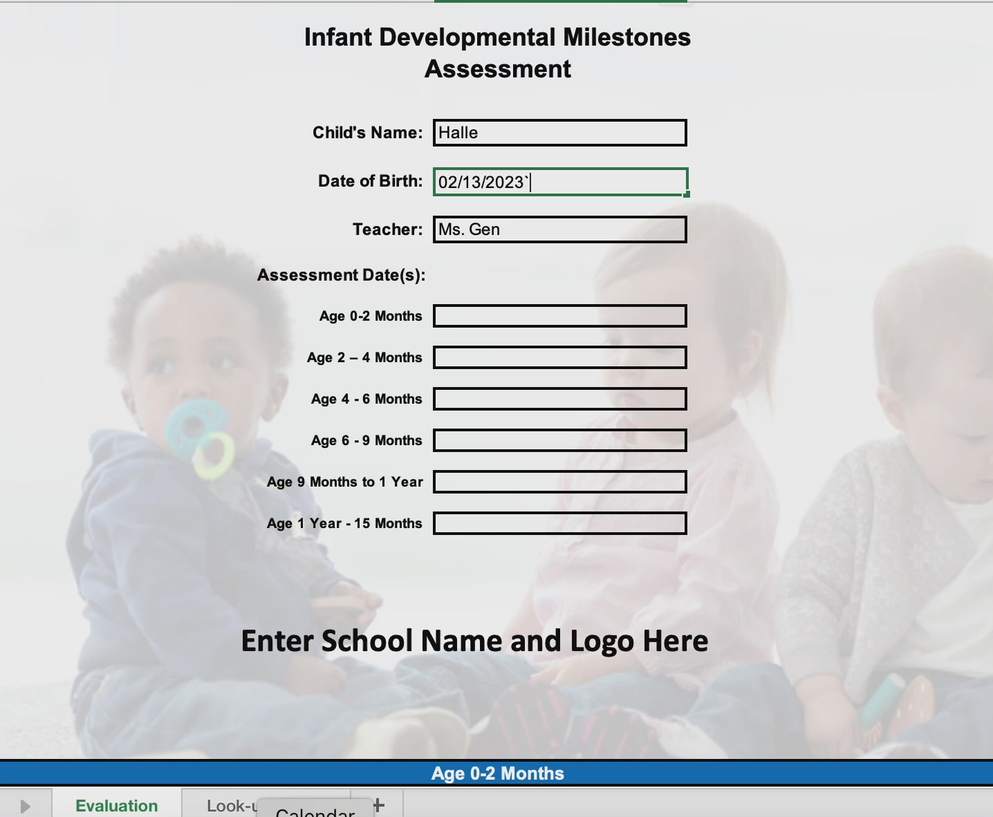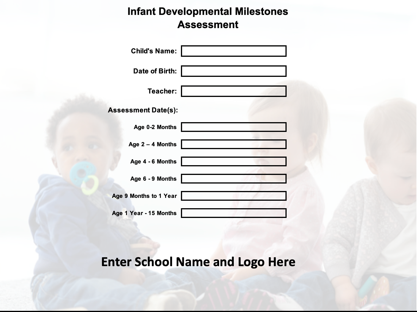 This tool outlines the developmental milestones, goals, and learning for infants through 15 months. The milestones are taken from the CDC. This document is editable to fit your school's unique learning environment.