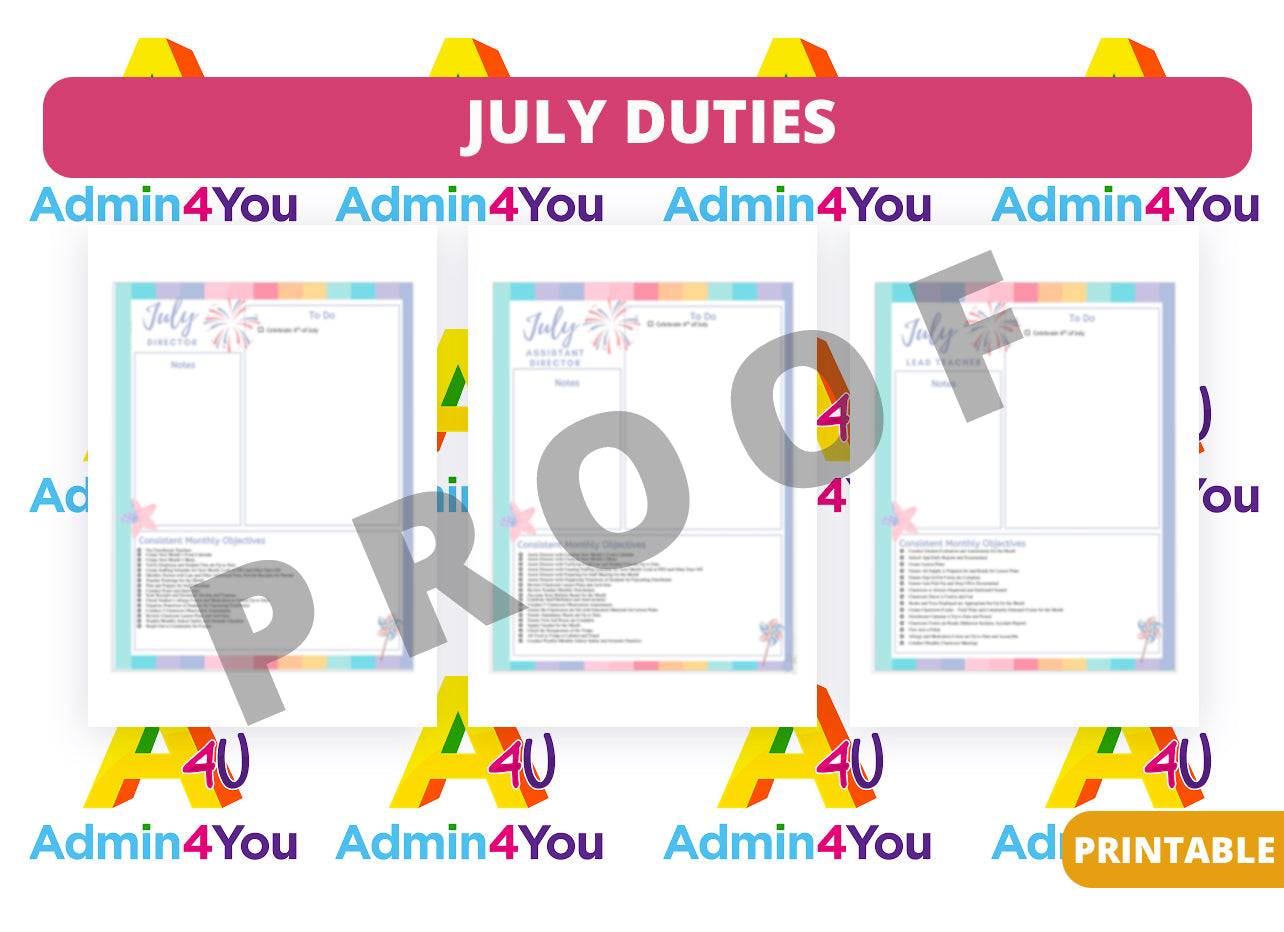 July Duties Checklists