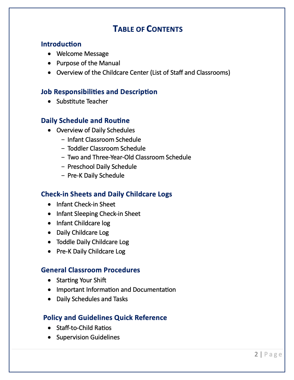 This substitute teacher manual is a valuable resource that not only equips substitute teachers with the necessary information and tools for their daily responsibilities but also serves as a quick reference guide for policies, guidelines, and emergency procedures, ensuring a safe and nurturing environment for the children under their care.