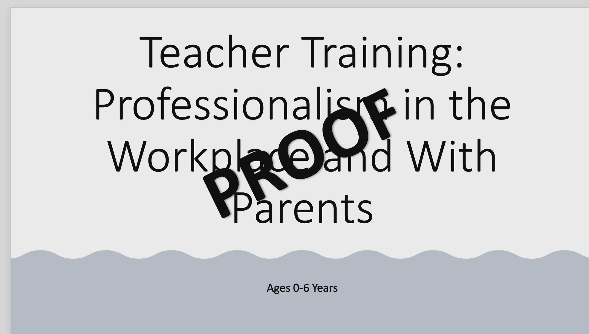 This teacher training program is an hour course on professionalism in the workplace. This is a fabulous tool for directors to train their new and current employees, and for the employee to satisfy their yearly hours in the field if self-reported trainings are valid in your specified state. It is your responsibility as the customer to verify this. These trainings can be used year after year!