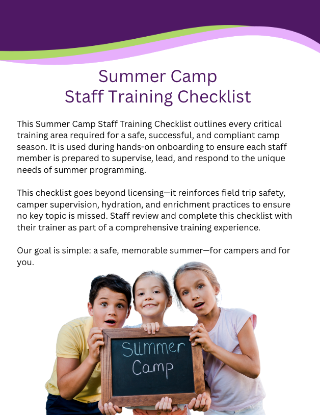 Whether you're caring for infants or leading summer camp, this tool will help ensure that you're confident, prepared, and fully supported in your role.